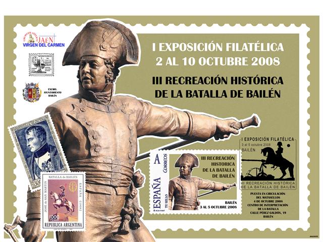 El Ayuntamiento de Bailén ha organizado con la colaboración del Grupo Filatélico «Virgen del Carmen» de Jaén y la sección filatélica del Centro Cultural Poveda de Linares, esta exposición temporal que albergara distinto material filatélico y de coleccionismo. Escenas de la Guerra de la Independencia, personajes relacionados con la Batalla de Bailén, temática militar de la época, tarjetas postales con indumentaria de la época, construcciones militares, correspondencia histórica, historia postal de la localidad en lo que respecta al apartado de la filatelia, vitofilia, programas de cine, etiquetas de vinos…, y el soporte de la elaboración y edición de material filatélico.