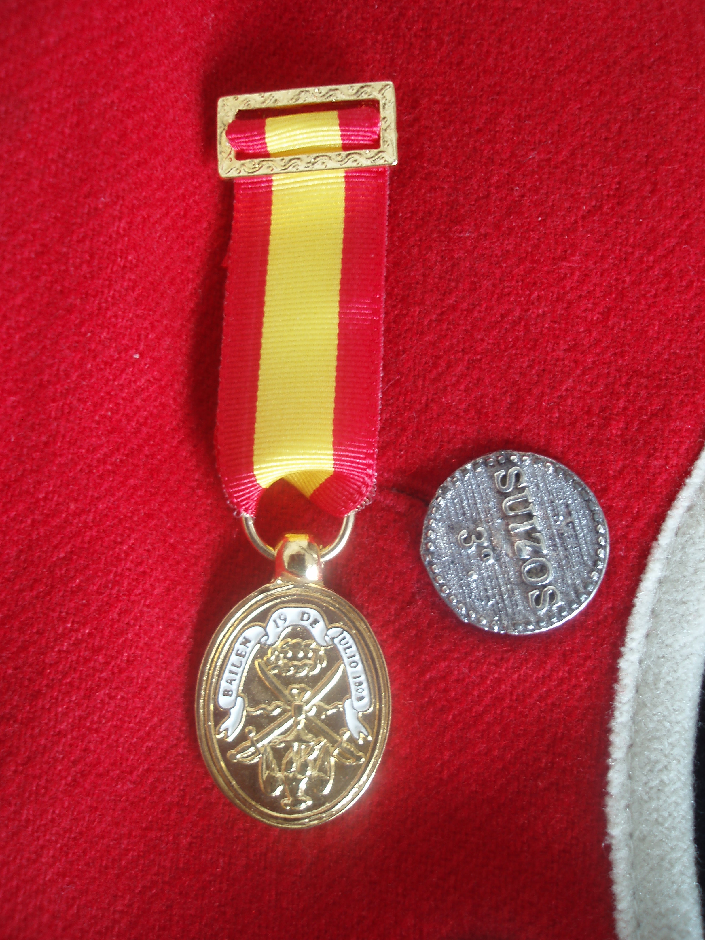 La tarde no dejaría de dar sorpresas. Reding nº 3 desfiló por las calles de Bailén hasta el grandioso Paseo de Las Palmeras, donde tuvo lugar un acto institucional con presencia del Alcalde de Bailén, Bartolomé Serrano, y la Corporación Municipal. Junto a los compañeros del Regimiento Jaén, Reyna y Voluntarios y Aguadoras, el Regimiento Suizo de Reding nº 3 formó ante el monumento a los héroes de la Batalla de Bailén. Tras un emotivo discurso que cerraba los actos de la Recreación Histórica del Bicentenario, el Alcalde distinguió a los miembros del colectivo malagueño con la medalla de Bailén, una réplica exacta de aquella que se entregó a los héroes de la campaña, en reconocimiento al trabajo y dedicación en pos de la investigación, recuperación y divulgación de la Campaña de Andalucía de 1808.