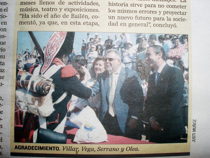 Diario Jaén. El Sargento 1º Granadero, Fernando Vázquez, recibe el agradecimiento del Alcalde de Bailén, Bartolomé Serrano, y los líderes de los demás partidos políticos.