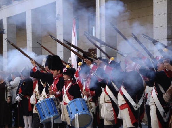Evento que finalizó con la ofrenda floral en cada uno de los cuatro pilares que sustentan el monumento a la Libertad, con nombre de Igualdad, Democracia, Justicia y Convivencia, y una salva de fusilería por parte de los recreadores históricos.