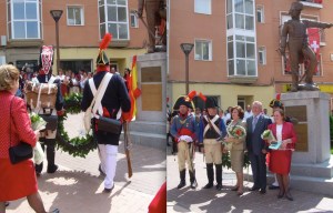 A continuación, dos recreadores, un granadero del Regimiento Reding y un artillero, portaron una corona de laurel que María del Mar y Alicia Reding y el alcalde ofrendaron junto a la estatua y, seguidamente, los pífanos y tambores interpretaron los himnos de Suiza y España.