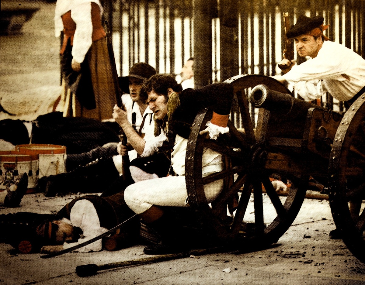Como hace 200 años, el pueblo de Madrid, representado magníficamente en su mayor parte por la Agrupación cultural “Los Castizos” de Madrid, llegaba solicitando armas para defenderse de las tropas francesas. Sin embargo, el jefe del Parque, el capitán de Artillería Luis Daoíz (interpretado por Jon Valera), en un primer momento decidía respetar las órdenes superiores de no salir de los cuarteles y, mucho menos, apoyar la sublevación popular. Con la llegada del capitán Pedro Velarde (Gustavo Gómez) y los Voluntarios del Estado con el teniente Jacinto Ruiz (Jesús Ruiz de Burgos), Daoíz acabaría entregando las armas y organizando la defensa. El combate comenzaría tras rechazar con fuego de cañón la oferta de rendición de las tropas napoleónicas.