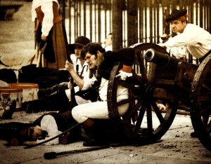 Precisamente, la pieza fundamental del evento fue el cañón del Grupo de Recreación Histórica “Compañía Fixa de Real Artillería de Málaga”, que, emplazado en la misma puerta del Parque, ante el monumento a Daoíz y Velarde, defendió la posición hasta el final sorprendiendo por sus descargas al público asistente.