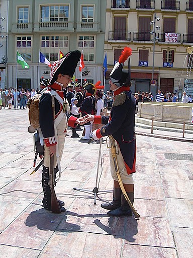 Siendo este el primer año del Bicentenario de ocupación napoleónica de la ciudad, a continuación se procedió a celebrar la amistad entre las distintas naciones europeas que un día estuvieron enfrentadas, pero que hoy felizmente se encuentran hermanadas en el seno de la Unión Europea mirando hacia delante en pos de la convivencia y la solidaridad entre los pueblos. Un homenaje a la paz que contó con la brillante interpretación de los respectivos himnos por parte de la Banda Municipal de Música y el izado de banderas, y que tuvo como colofón las salvas de honor de fusilería y artillería de la época que efectuadas por los Grupos de Recreación Histórica.