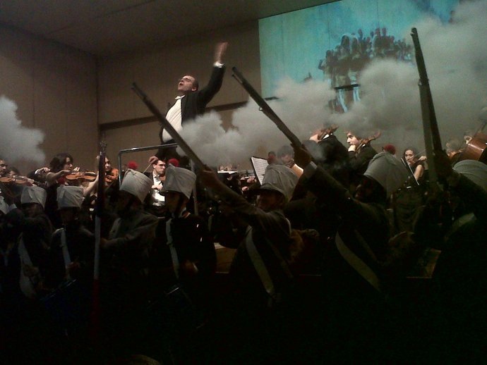 Una representación de miembros del colectivo, dirigidos por Fernando Vázquez y completamente uniformados como soldados napoleónicos, intervino en el triunfal final de «La Obertura de 1812» de Tchaikovsky, pieza compuesta para conmemorar la resistencia rusa en 1812 en la Batalla de Borodino frente al avance de las tropas de Napoleón Bonaparte.