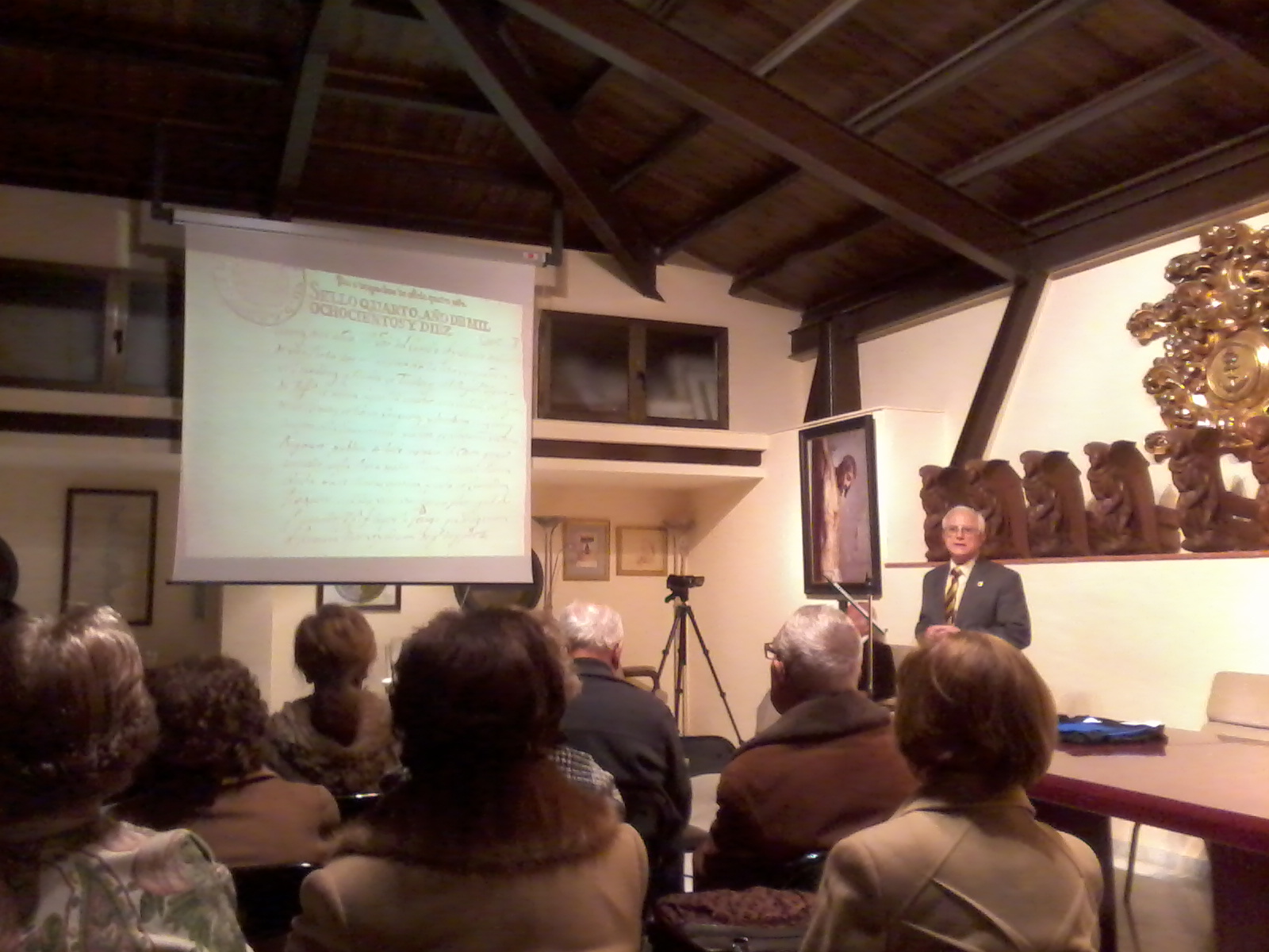 En la Sala Capitular del Salón de Tronos de la Cofradía de Mena, Olmedo expuso, a través de numerosos documentos y grabados de la época, aspectos como la labor del Gobernador Reding, la Batalla de Bailén, la invasión napoleónica de Málaga, las acciones de la guerrilla malagueña y un vistazo a las operaciones en Andalucía en 1811 (resaltando la Batalla de Chiclana o de La Barrosa, que este año será rememorada en su Bicentenario), pasando por figuras destacadas como Serrano Valdenebro, Ballesteros o Moreno.