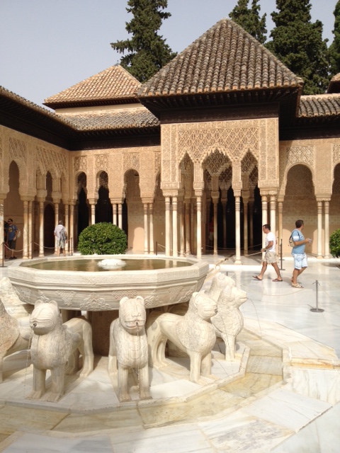 También fueron a Granada para visitar la Alhambra, que a principios de 1810 fue ocupada por las tropas francesas, que, atendiendo a su ruinoso abandono, restauraron el conjunto y la fortificaron, convirtiéndose además en palacio y puesto de mando del mismísimo general Horace Sebastiani. El escritor neoyorquino del Romanticismo Washington Irving, autor de los «Cuentos de la Alhambra» (1832), llegó a escribir que «con ese gusto ilustrado del que se ha distinguido siempre la nación francesa en sus conquistas, este monumento de elegancia y grandiosidad árabe fue rescatado de la ruina y la desolación absoluta en el que se encontraba. Los techos fueron reparados, los salones y galerías protegidas de la intemperie, los huertos cultivados, los cursos de agua restaurados, las fuentes, una vez más puestas a funcionar, y España puede agradecer a sus invasores por haber preservado para ella el más bello e interesante de sus monumentos históricos «. El propio José I reservó un presupuesto destinado a su conservación. Tras una década en restauración, los amigos de Saint – Lys, acompañados por Jon Valera, presidente de «Teodoro Reding», pudieron acceder y contemplar el Patio de los Leones, ahora con el aspecto en que fue concebido en el siglo XIV.