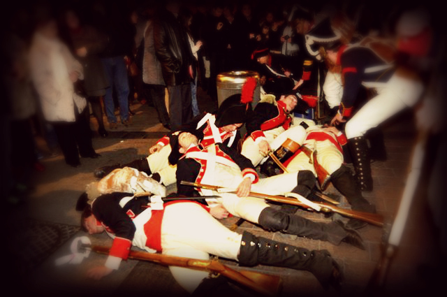 Como novedad, se instaló un campamento de época en la arboleda de Macanaz, junto al Ebro, donde se encuentran enterradas 10.000 víctimas de los Sitios que, gracias a los esfuerzos del colectivo aragonés, esperamos que pronto tengan su justo reconocimiento a través de un pequeño monumento. A pesar del frío, muchos de nosotros tuvimos el honor de pernoctar dos noches allí.